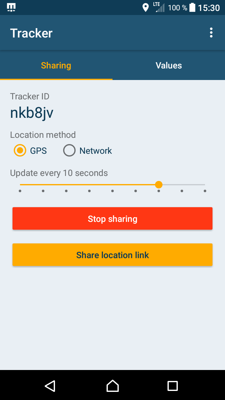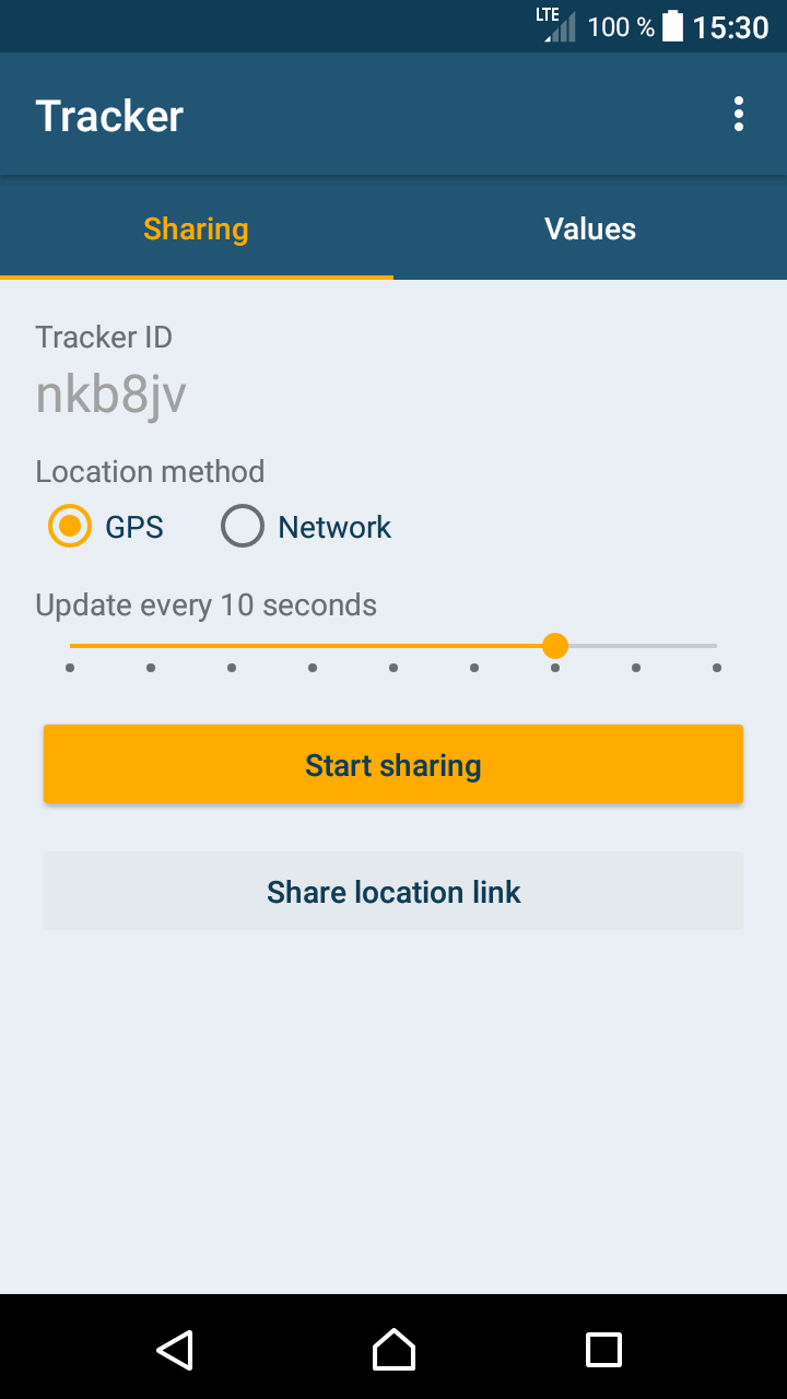If you want to share your location with others, you get a random Tracker ID assigned (for example, q1xcAw). You can share this ID via sms, mail or any other communication channel you prefer to those persons who should be able to see your current position on a live map. The Recipients open the link sent by you in a web browser and then can track your current location on a map.